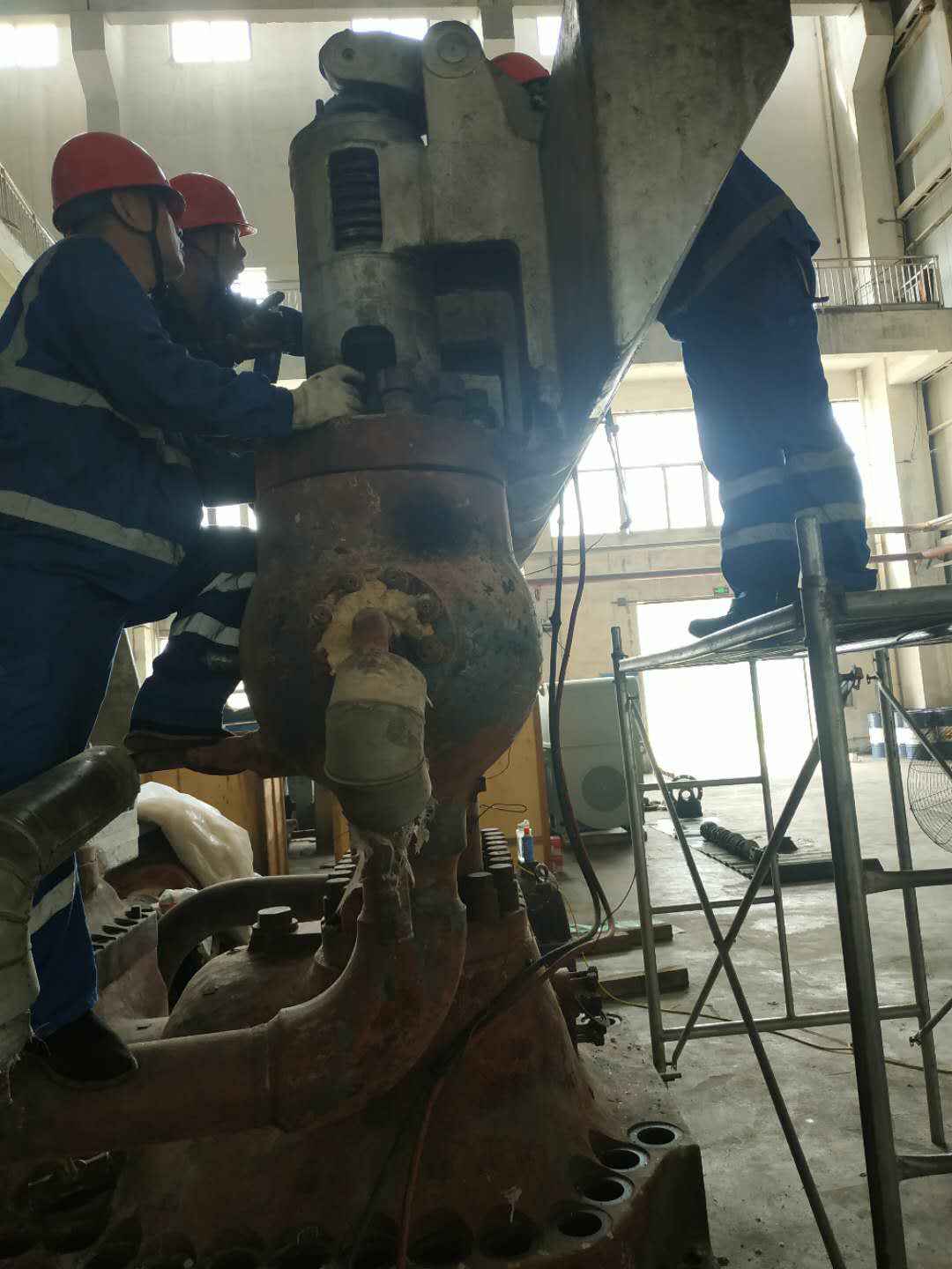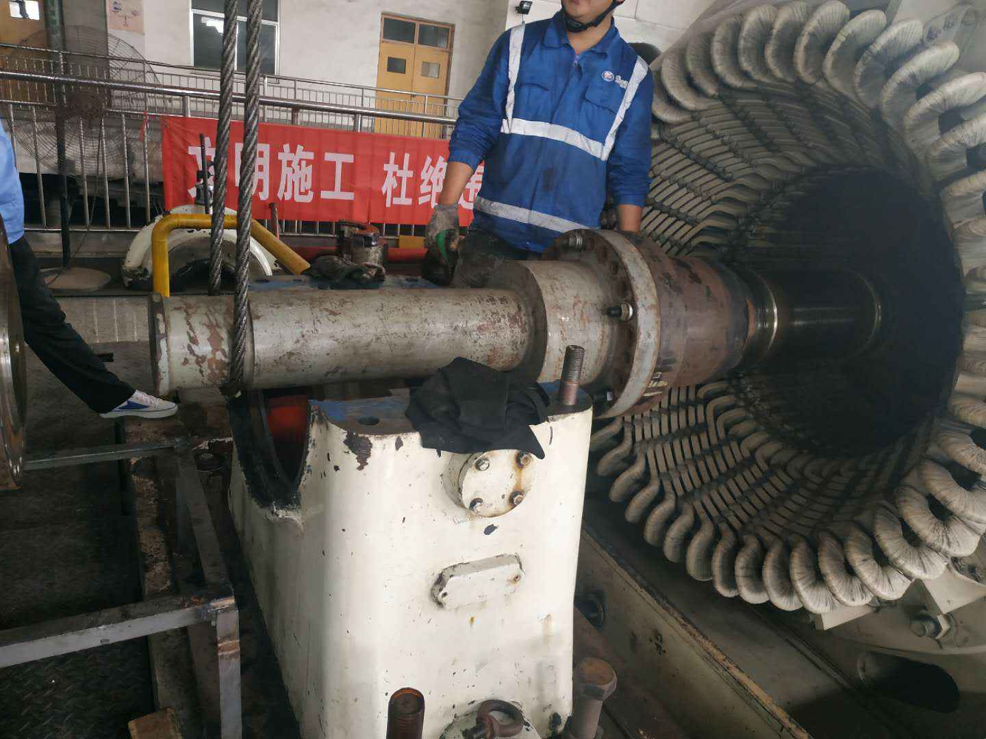 由开云官方版网站登录入口-开云online(中国)承建的山东海能化学有限责任公司机组B15MW背压式汽轮机组(原 C25抽汽凝汽式机组)大修工程现已完成凝结水泵、油站检修工作,发电机前后轴承座基础垫铁研磨工作,目前蒸汽室螺栓的拆卸工作及发电机定子与转子的清理工作陆续启动,下气缸吊隔板工作也在稳步进行中。